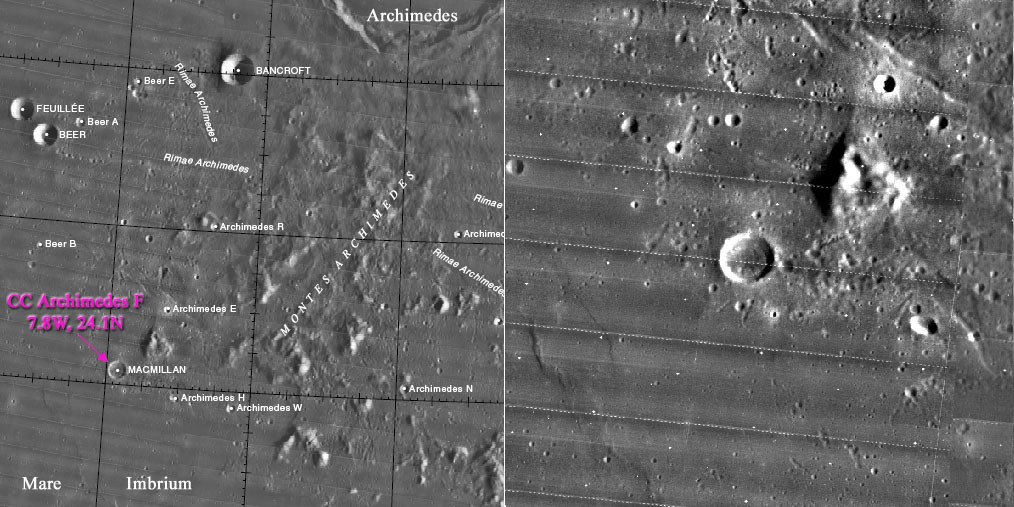 Un petit cratère d'impact de 7,5 km nommé "Archimedes F" a été renommé en 1976 en l'honneur du mathématicien et astronome américain William Duncan MacMillan (1871 – 1948).